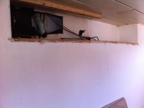 Open zagen van het plafond? Ja juist dat plafond wat net klaar was. Beetje jammer....maar dit was nodig vanwege het brandgevaar van het isolatiemateriaal in het plafond door de laswerkzaamheden aan de stuurhut. Maar goed, dat komt ook wel weer goed. Het kost alleen weer tijd.
